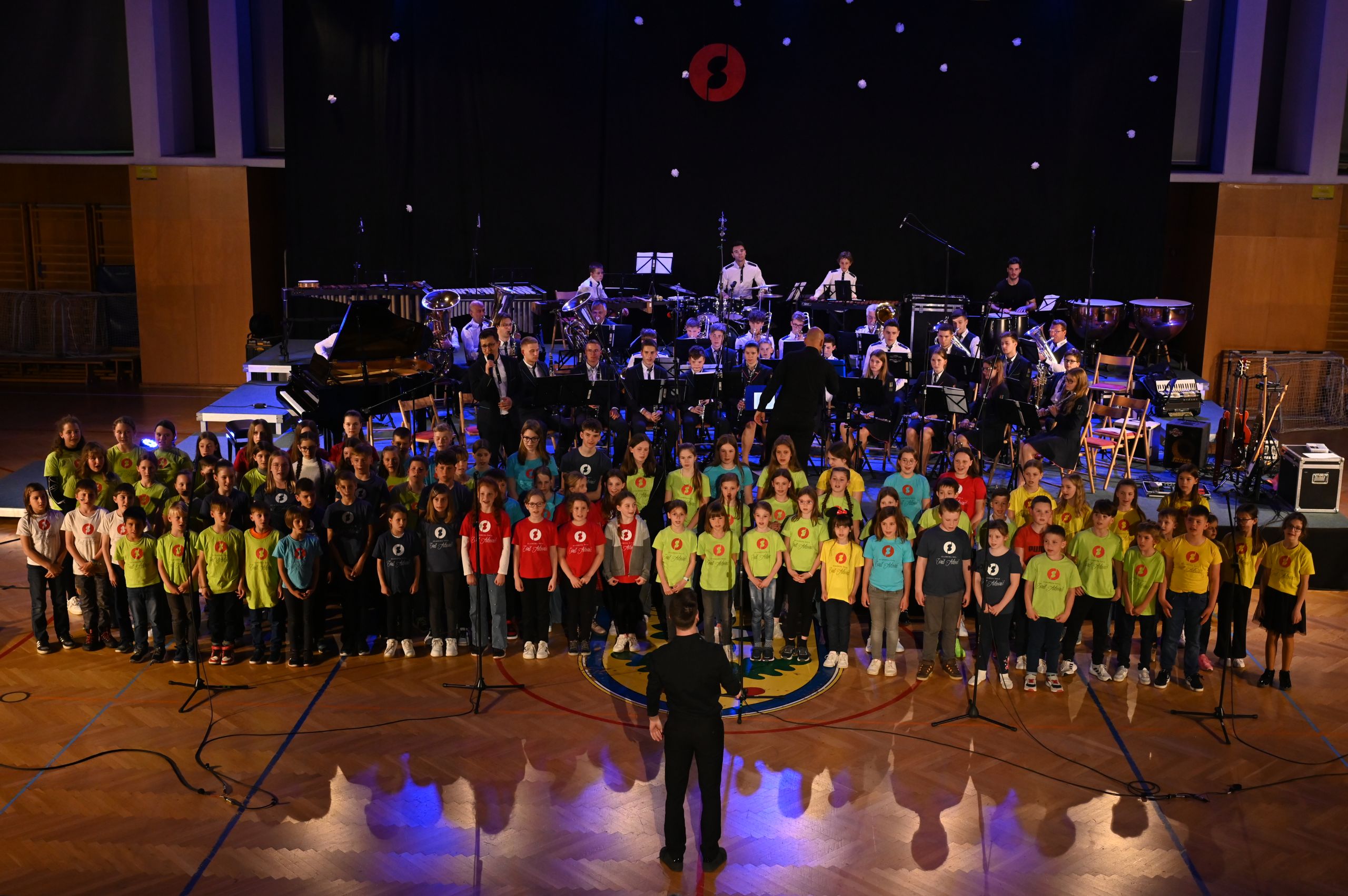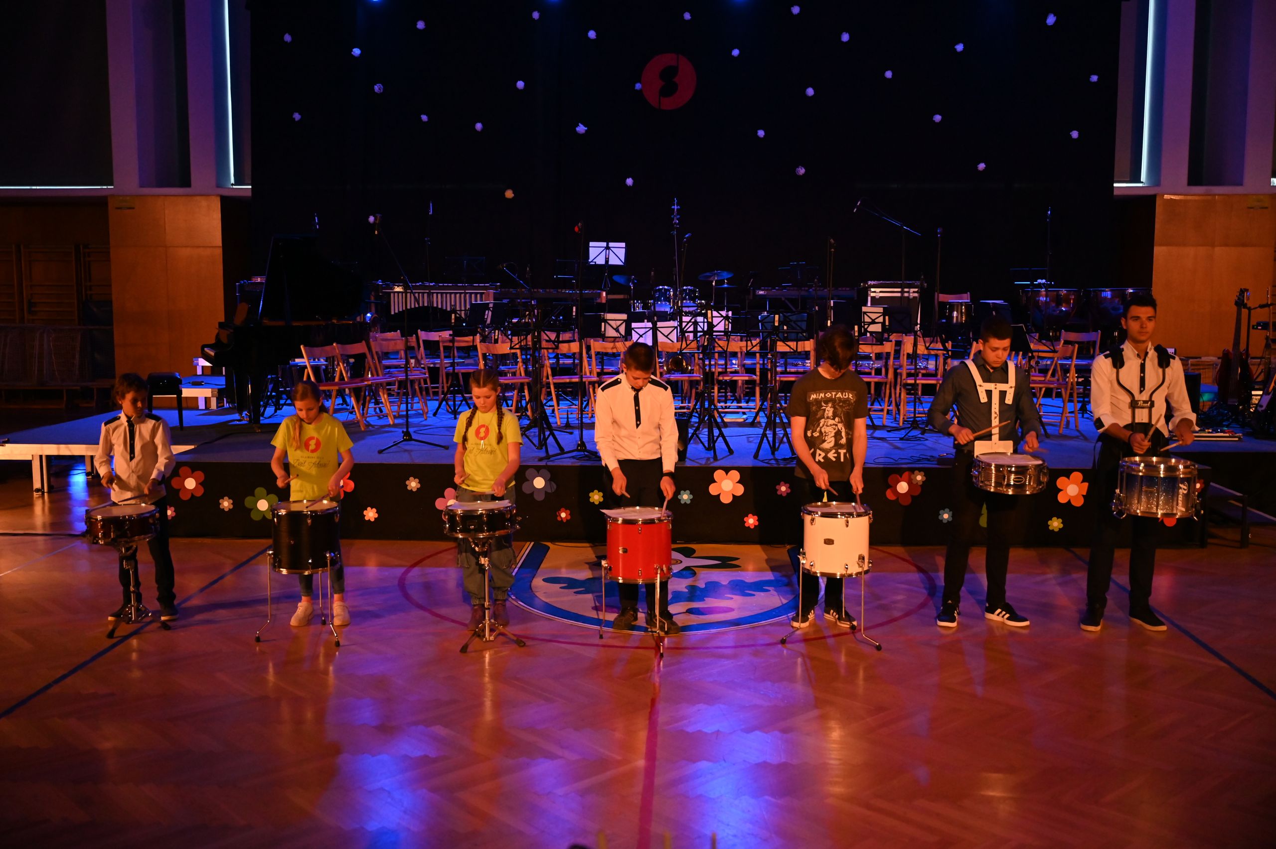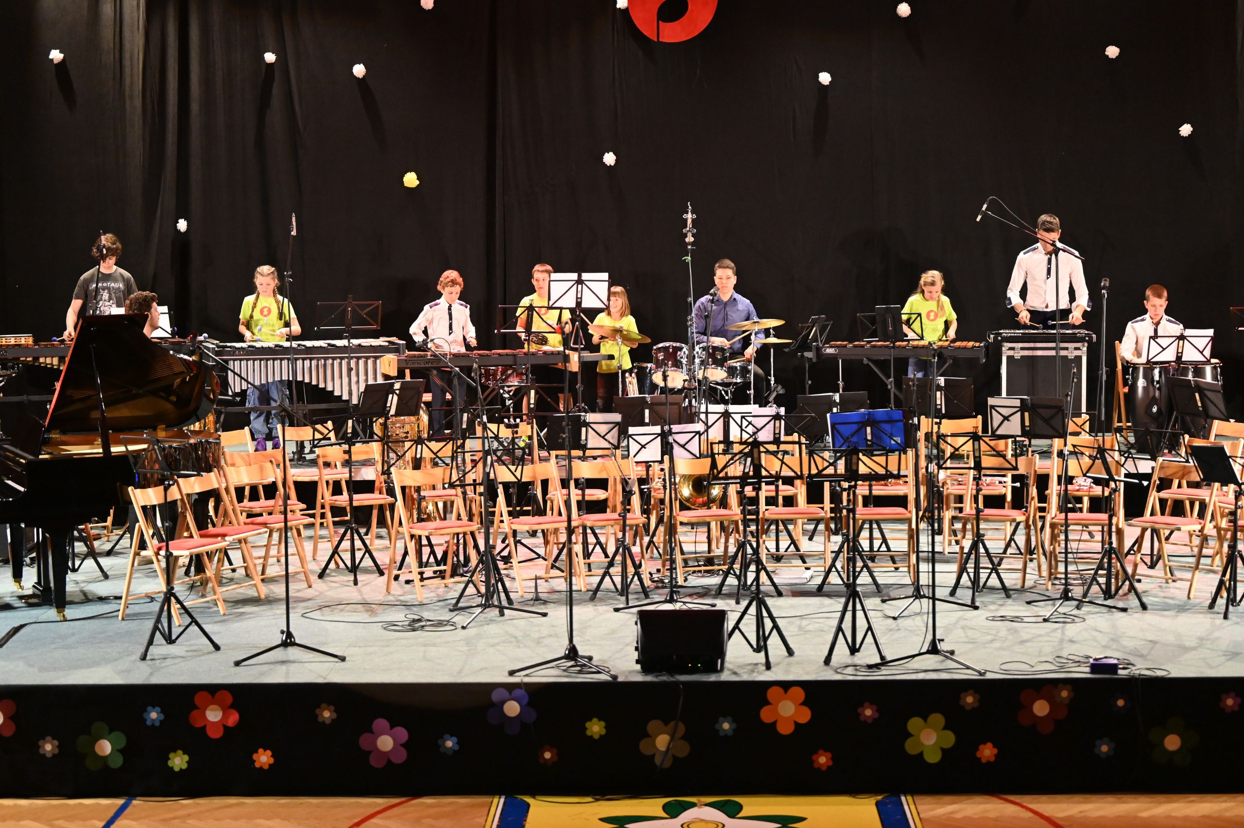 Koncert so slavnostno otvorili učenci Glasbene šole, ki se učijo tolkal. Pod mentorstvom Tilna Zakrajška so zdajšnji in bivši učenci združili moči in skupaj zaigrali uvodno pesem ter gledalce ponesli skozi Utrip južne tribune. Sledila je prva napoved in pozdrav vsem gostom, nastopajočim in obiskovalcem. Vezna beseda je celoten koncert melodično in doživeto tekla preko voditeljice Tine Šlajpah, ki je prvič vlogo voditelja dotičnega koncerta prevzela z velikim navdušenjem. Sledila je učenka violine, ki je v vseh letih učenja med najbolj uspešnimi učenci glasbene šole. Za sabo ima že preko 5 tekmovanj s samimi najboljšimi uvrstitvami zlatih in srebrnih priznanj. Lucija Ana Dragaš je gledalce popeljala skozi melodije Tartinija, na klavirju pa jo je spremljal učenec Dominik Kovačič. Mentorici točke sta bili Tina Blaznik (violina) in Maruša Frelih (klavir). Sledila je klavirska točka francoskega skladatelja in komponista Debussyja pod spretnimi prsti učenke Ive Kampuš iz enote Dol pri Ljubljani, mentorica Janja Šuštaršič.