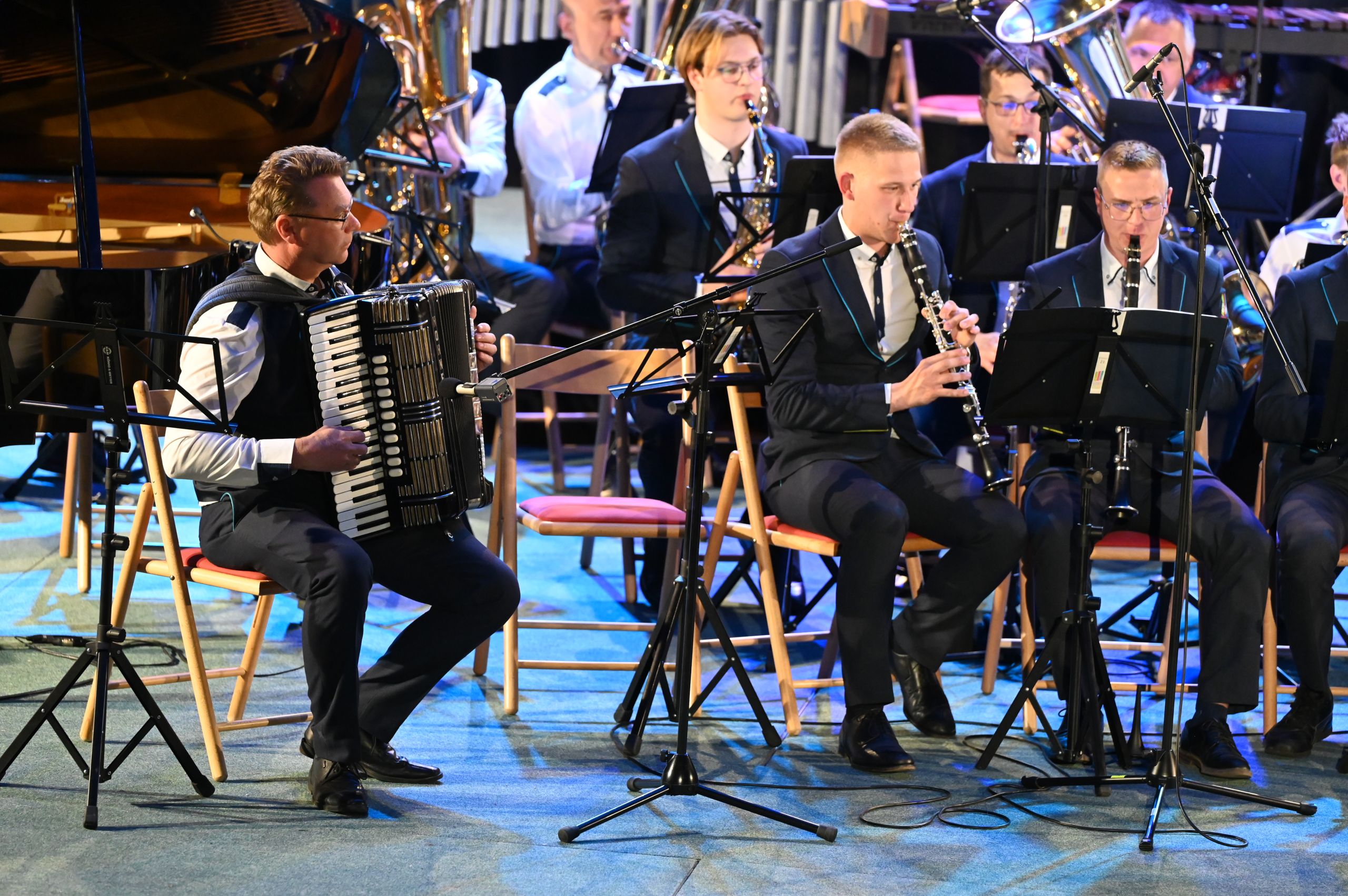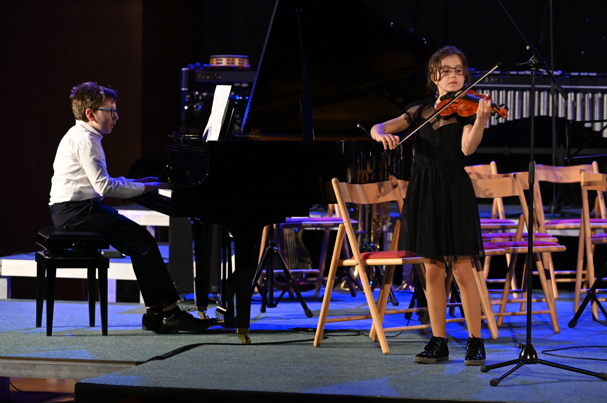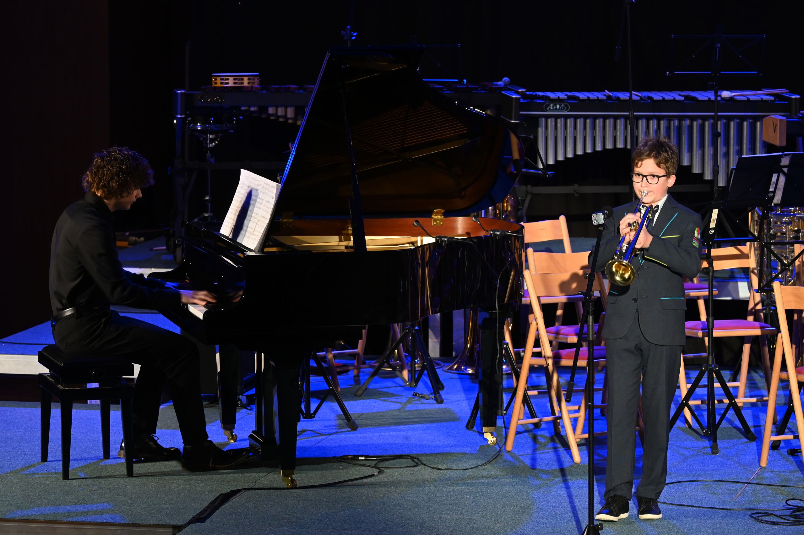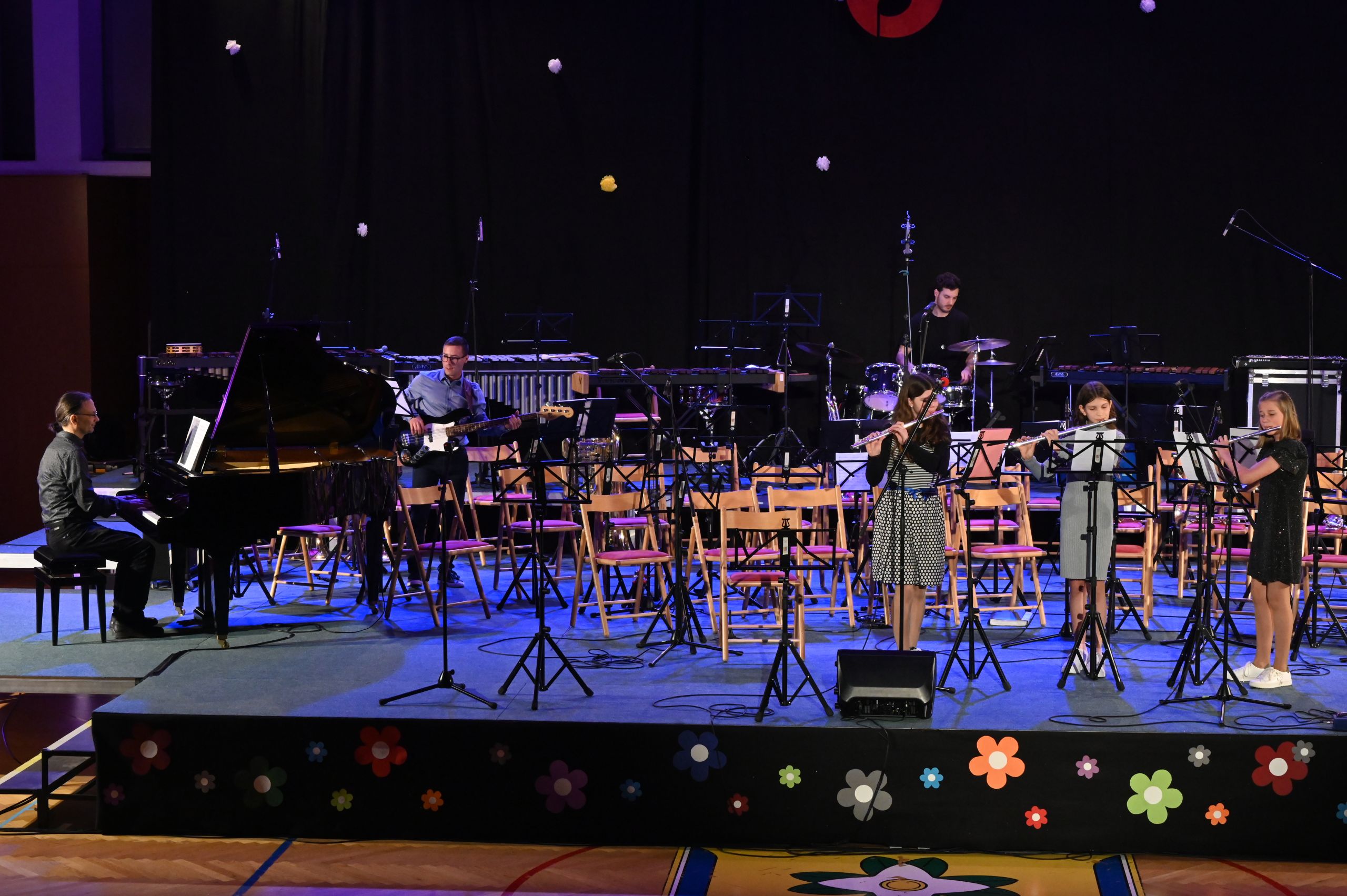 Pri naslednji točki je zopet sledil klavir, vendar v duetu s flavto. Učenki enote Dol pri Ljubljani Sara Michelle Pecik in Polona Babnik sta se predstavili s pesmijo Variacije za flavto in klavir v e-duru, znanega skladatelja Chopina. Malo predaha in vezne besede, in že so zopet na vrsto prišli tolkalci. Zasedba je tokrat poleg vseh bobnov zasedla še druge tolkalske inštrumente. Slišati je bilo marimbo, vibrafon, zvončke, ksilofon, činele in little percussion. Z jamajško ljudsko pesmijo so gledalce popeljali na drugi konec sveta. Prav je, da se na koncertu predstavijo različni inštrumenti, zato so se v naslednji točki predstavila trobila. Trobilski kvintet pod vodstvom Mateja Rihterja nam je zaigral znano tujo skladbo Wonderful Tonight. Sledila je pevska točka učenke Tinkare Bučar pod mentorstvom Urške Kastelic. Slišati je bilo melodije pesmi I could have danced all night ob spremljavi učiteljice klavirja, Janje Šuštaršič.